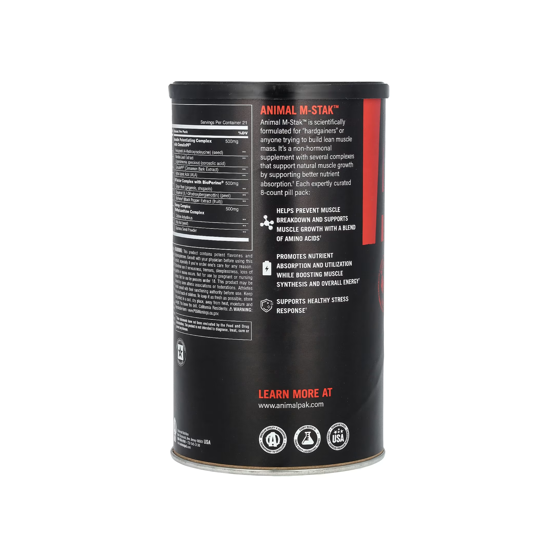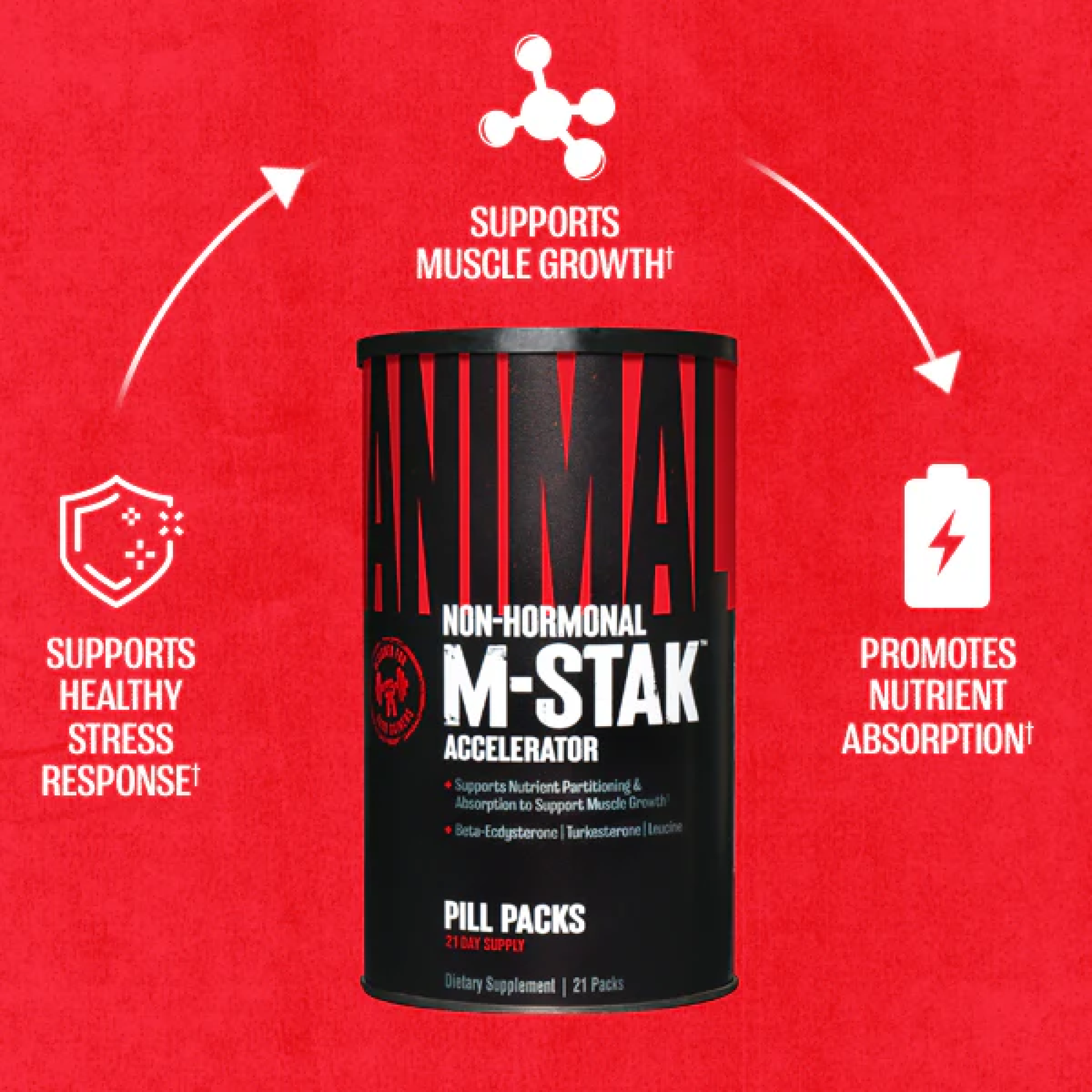 Animal M-Stak, özellikle kas yapmakta zorlanan (hardgainer) sporcular için tasarlanmış, tamamen hormonal olmayan ve kas kütlesi kazanımını destekleyen doğal anabolik bir formüldür. Her pakette yer alan gelişmiş bileşenler sayesinde protein sentezi artırılır, katabolizma engellenir ve besinlerin kas dokusuna yönlendirilmesi sağlanır.