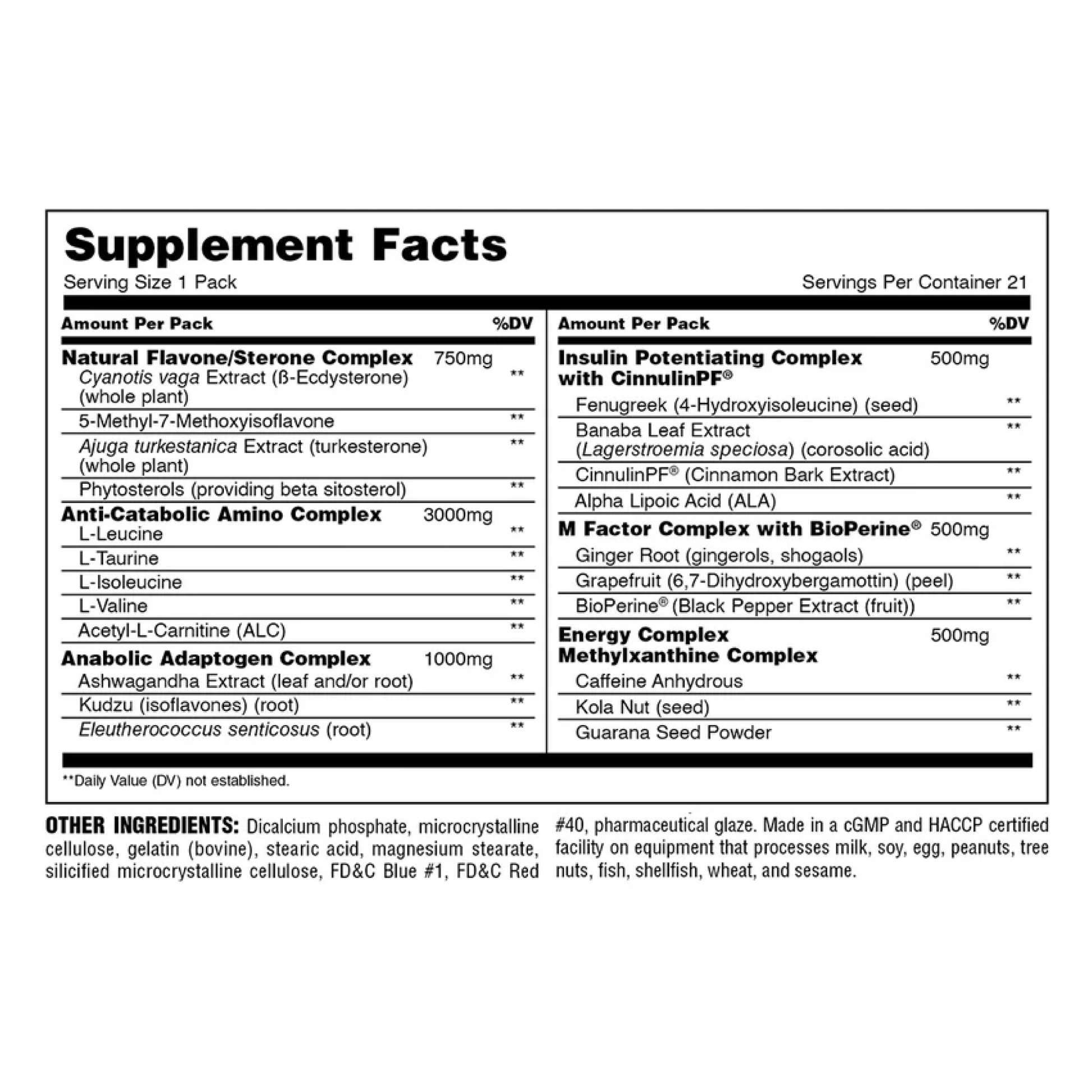 İçeriğinde bulunan beta-ekdisteron, turkesteron, HMB, insülin benzeri kompleksler, leusin ve amino asit kompleksleri, vücudun kas yapım kapasitesini doğal yollarla en üst seviyeye taşır. Aynı zamanda antrenman öncesi uyarıcı etki için eklenen kafein bazlı enerji kompleksi, her pakette isteğe bağlı çıkarılabilir kırmızı kapsül olarak sunulur.